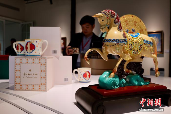 3月26日,常沙娜艺术主题文创产物吸收观光者。中新社记者 钱朝菲 摄